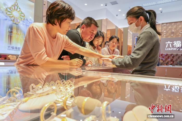 2026年1月1日,顾客在cdf海口国际免税城选购黄金饰品。中新社记者 骆云飞 摄