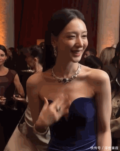 尤为令人印象深刻的是,她全程姿态松弛、落落大方,既未刻意护胸,亦无半分犹疑闪躲,举手投足间尽显沉稳底气与东方风骨。