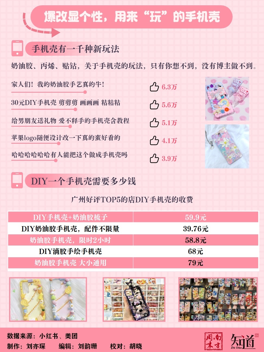 在广州众多DIY小店里,DIY一个手机壳的费用大概在30到100元之间,成为了许多姐妹聚会的新选择。