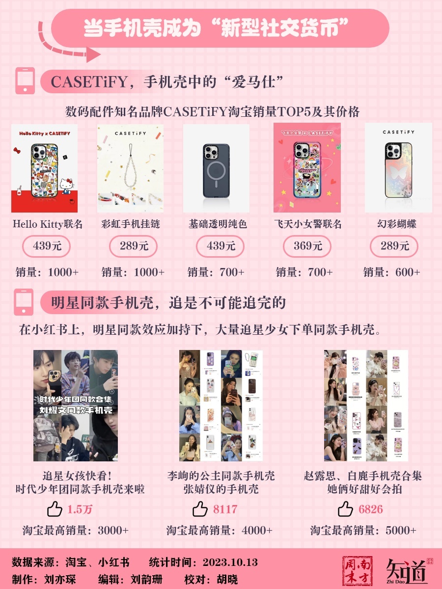 CASETiFY,被称为电子茅台,淘宝最热销的Hello Kitty与三丽鸥联名款,售价439元,已经有1000多人下单,在明星同款效应加持下,赵露思同款、TNT同款等吸引着追星少女们慷慨解囊。