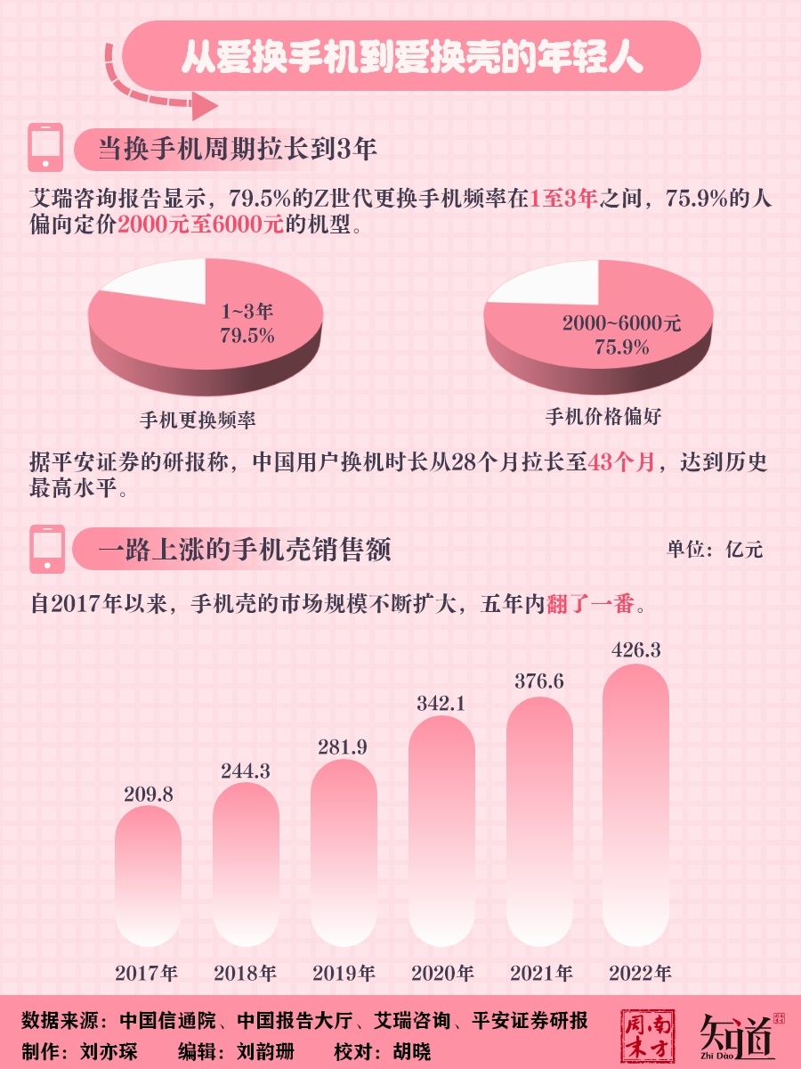 铁打的手机,流水般的手机壳。自2017年以来,手机壳的市场规模不断扩大,五年内翻了一番。不同于长辈们“一机一壳”的“专一”,当代年轻人热衷于给手机玩“换装秀”。